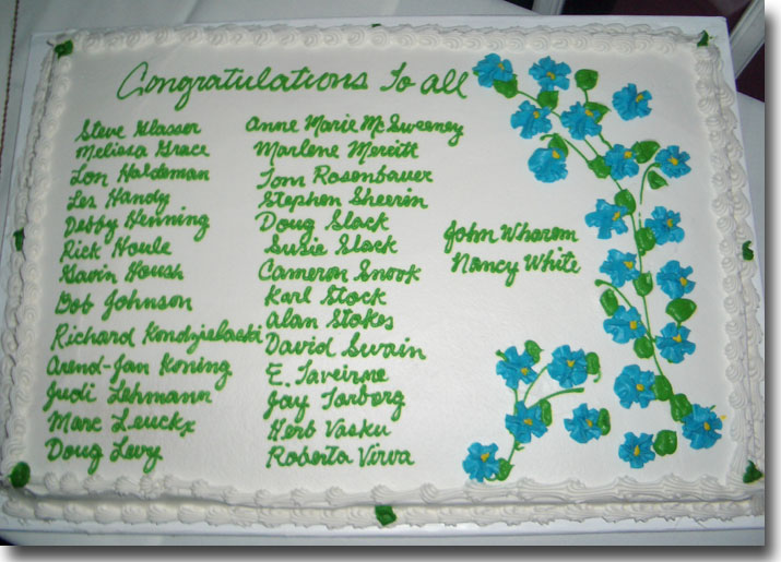 was served, Susan handed out plaques to each of the