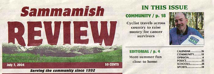 This article appeared in the July 7th issue of Sammamish Review, the newspaper in my home town.